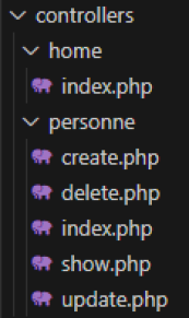 Copiez les fichiers create.php, delete.php, personnes.php, show.php, update.php dans le dossier app/controllers/personne.