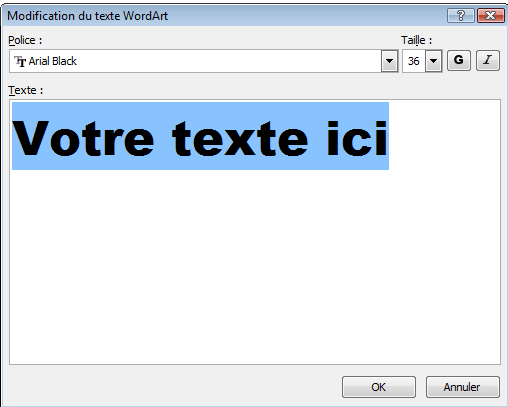 Saisir le texte à mettre en WordArt à la place de "Votre texte ici"
