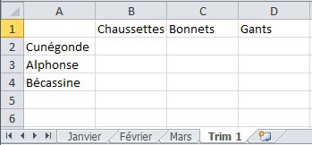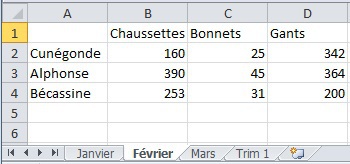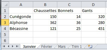 cliquer sur la cellule B2 de la feuille Janvier