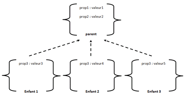 Si element.prop1 est modifiée alors enfant.prop1 est naturellement modifiée.