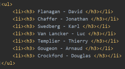 Pour construire le HTML, nous déroulons les données du tableau $listeAuteurs :